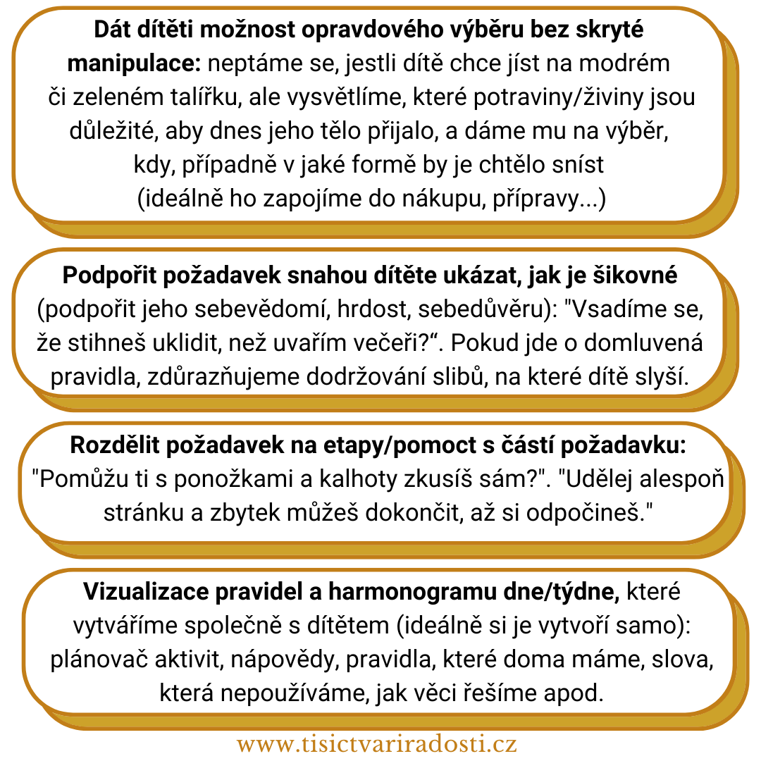 Prvním a nejdůležitějším krokem je vlastní práce na důvěře, že přístup, pro který se rozhodnete a který dítě potřebuje, má smysl a je nejlepší možný (neděláte nic špatně),